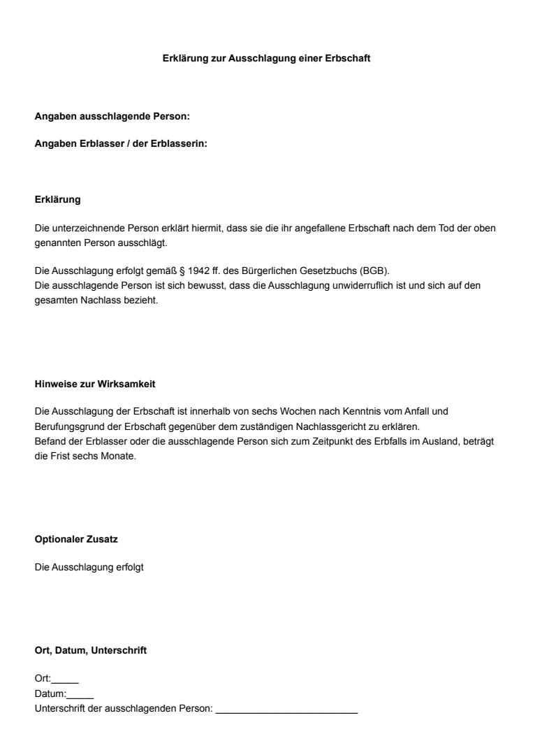 - Zustimmung und Abschlussklausel: Alle Erben müssen den Vertrag unterschreiben und die Auseinandersetzung ausdrücklich akzeptieren. Eine Abschlussklausel bestätigt, dass mit der Vereinbarung alle Ansprüche untereinander erledigt sind.
