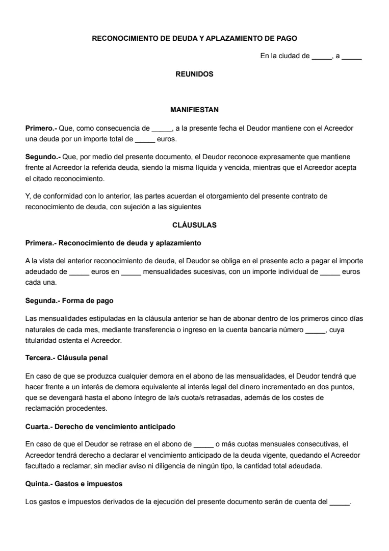 Reconocimiento de deuda y aplazamiento