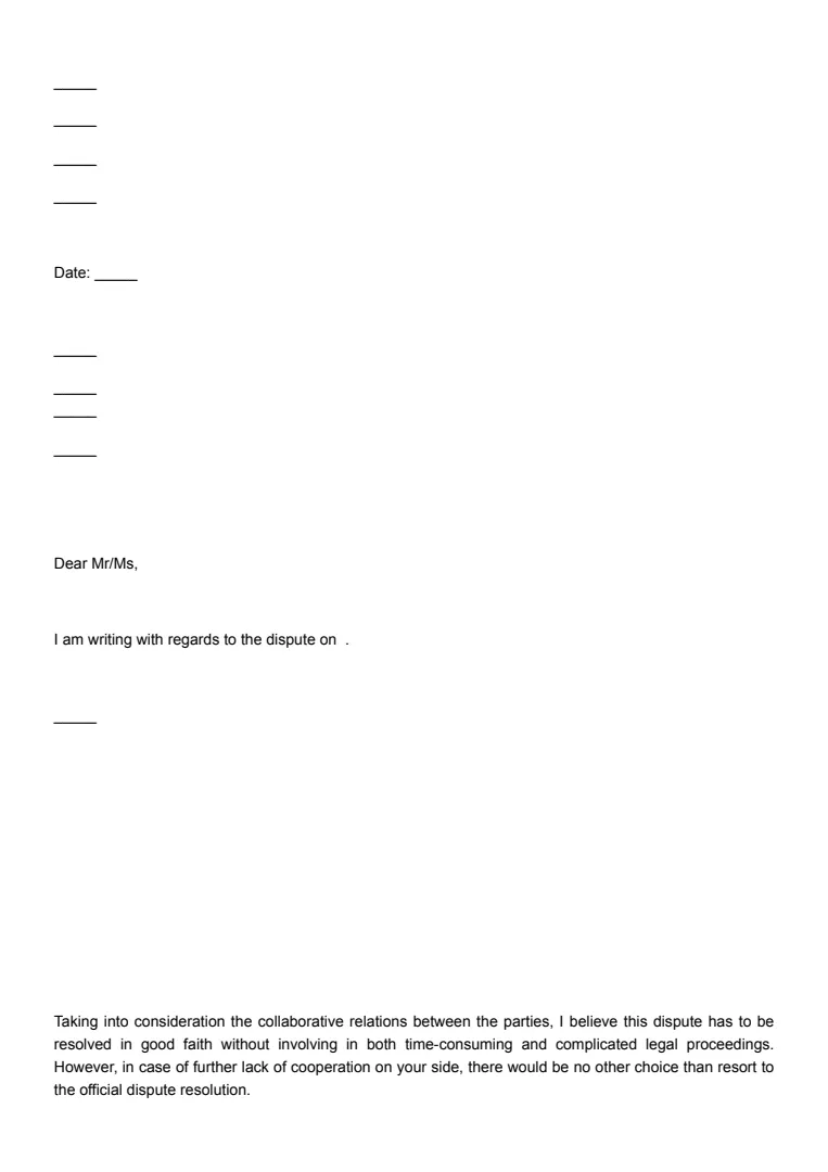 Clearly set out what you expect the other party to do to resolve the matter. This could involve payment or another specific action.